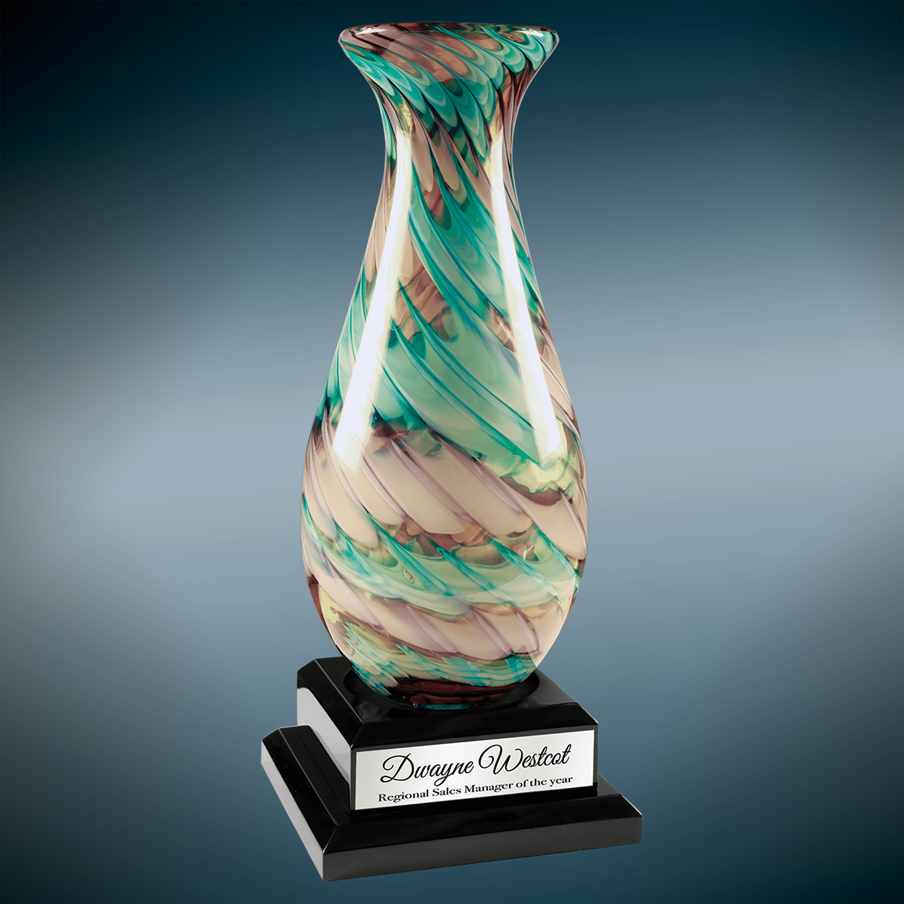 14 1/4″ Art Glass Vase with Black Royal Piano Finish Base