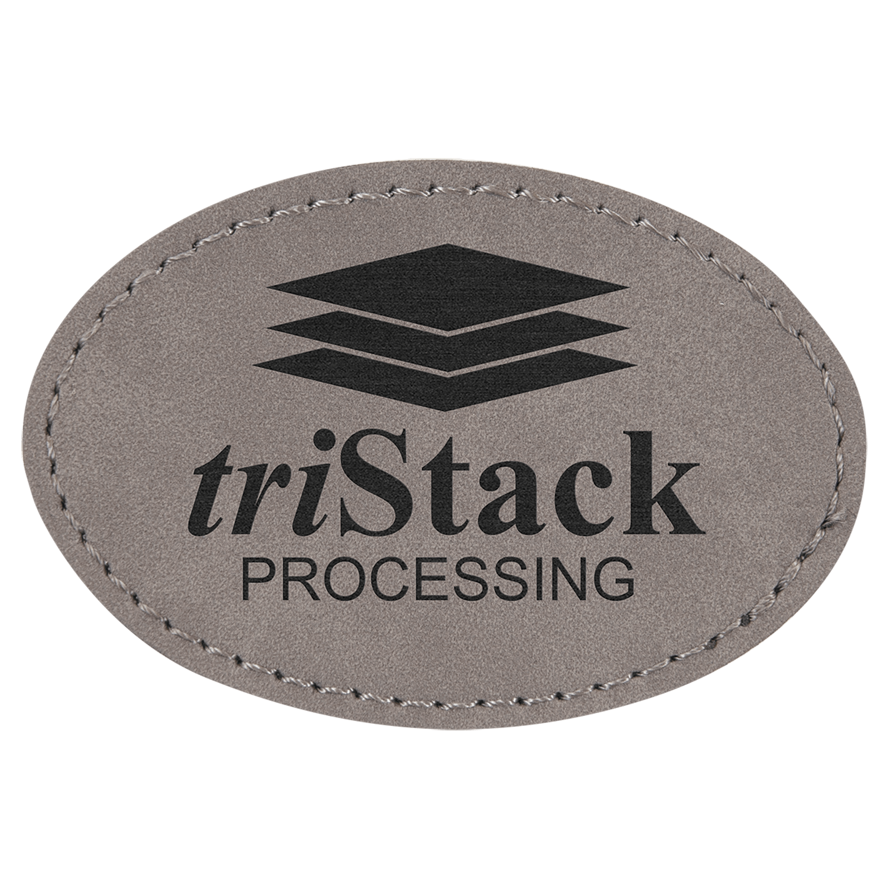 3″ x 2″ Oval Black/Silver Laserable Leatherette Patch with Adhesive