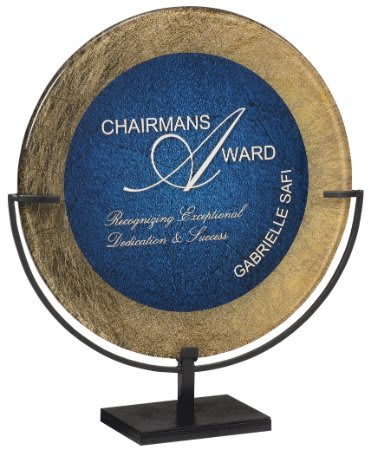 13 3/4″ Gold/Blue Round Acrylic Art Plaque with Iron Stand