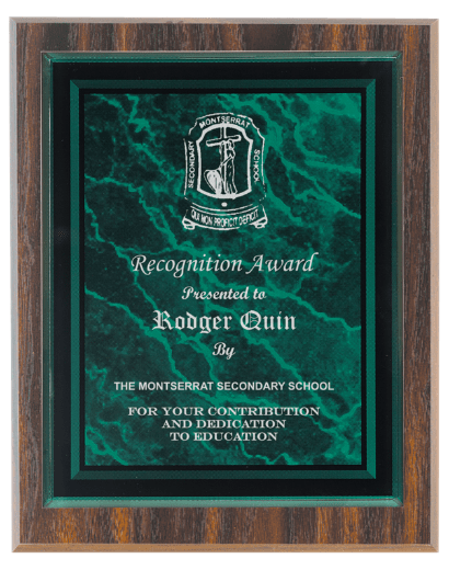 GREEN MARBLE PLQ PLT/WALNUT FINISH PLQ